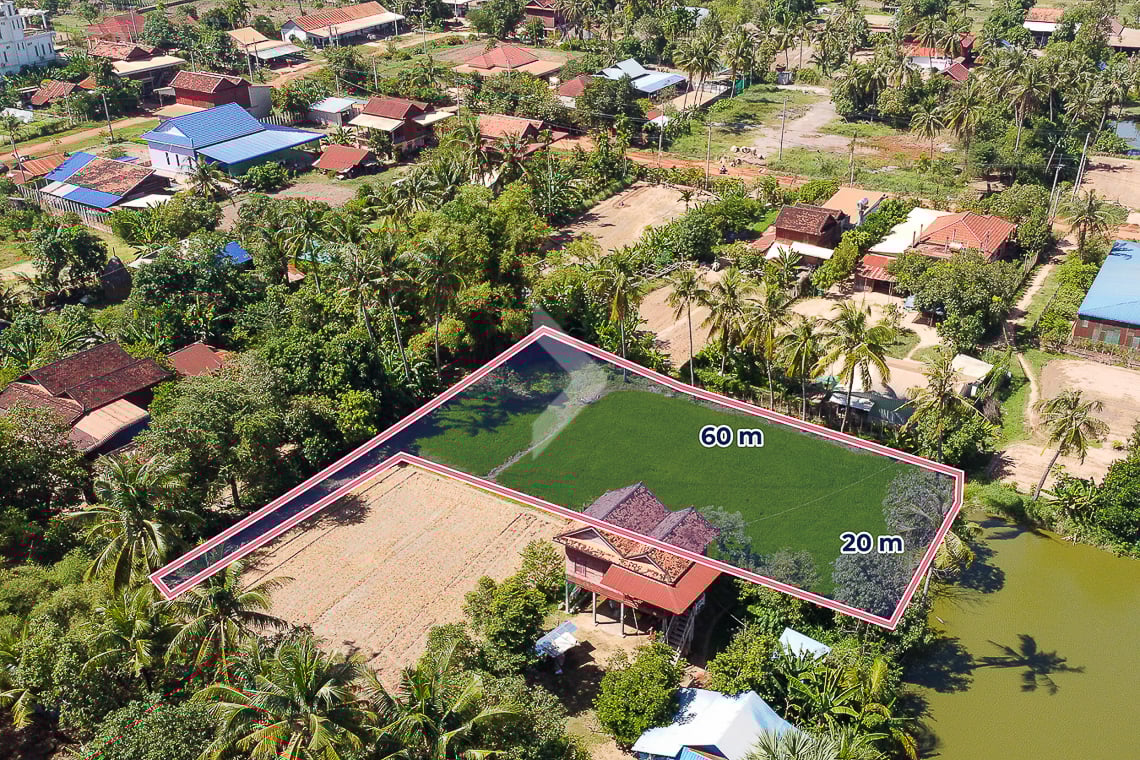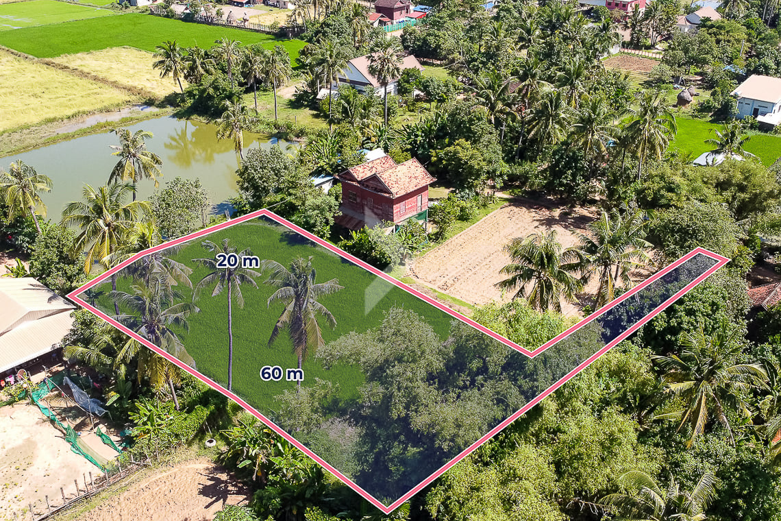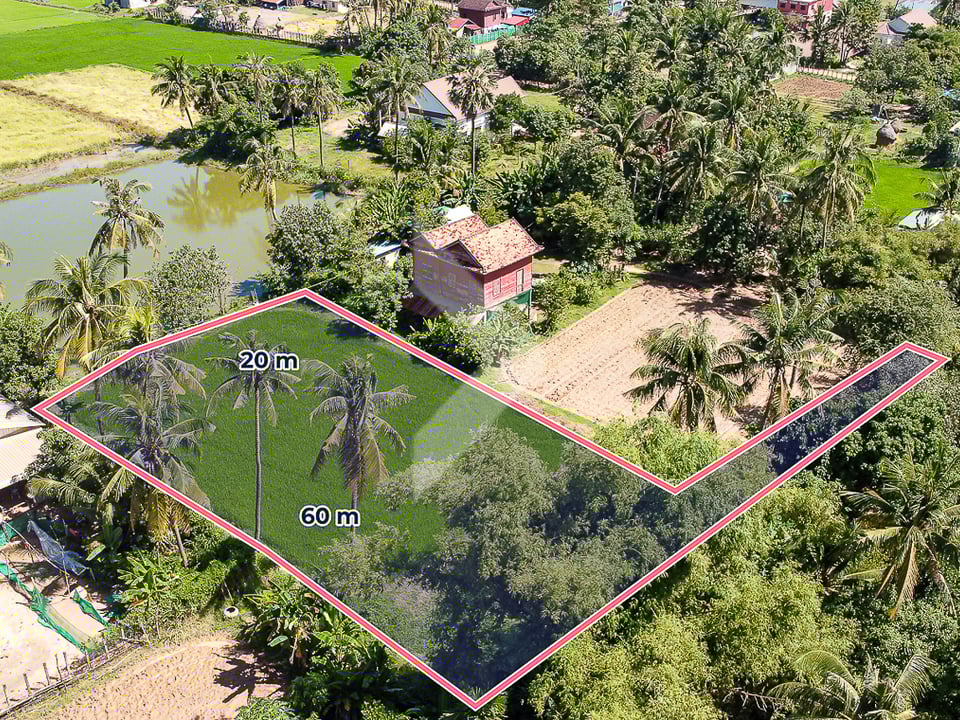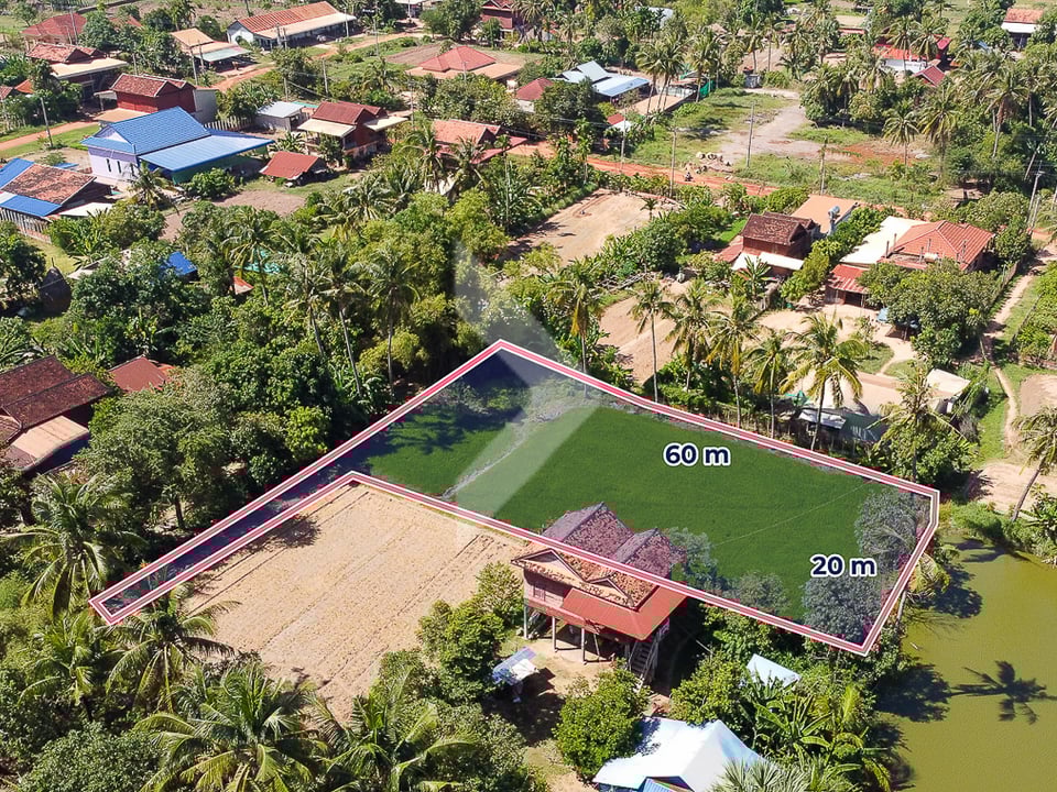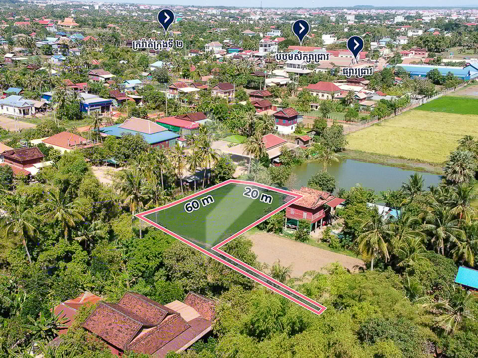 Land for sale near Chreav Market, located in Chreav Commune, Siem Reap City, just a 15-minute drive from the Old Market. This property is perfect for those looking to build a holiday villa, with the potential to generate high rental income. Its convenient location and development potential make it a smart investment opportunity.
