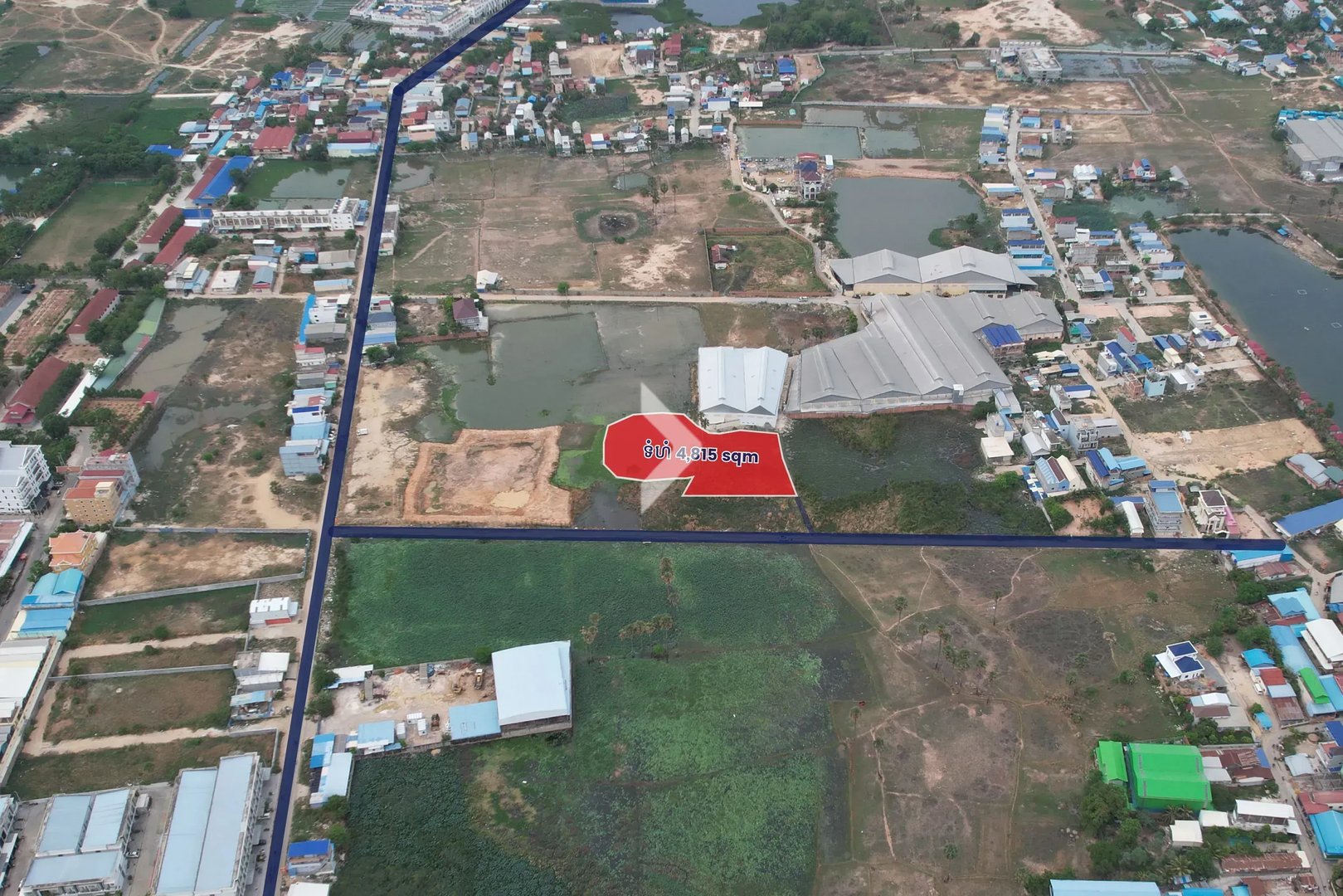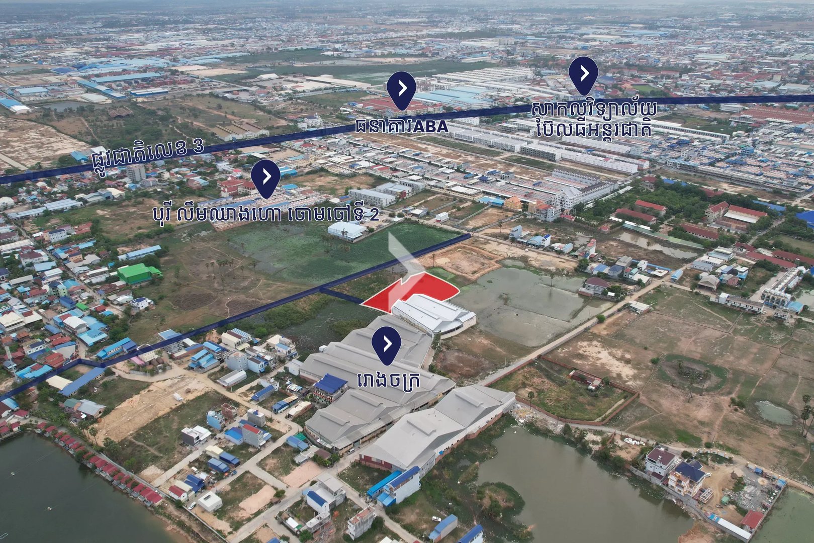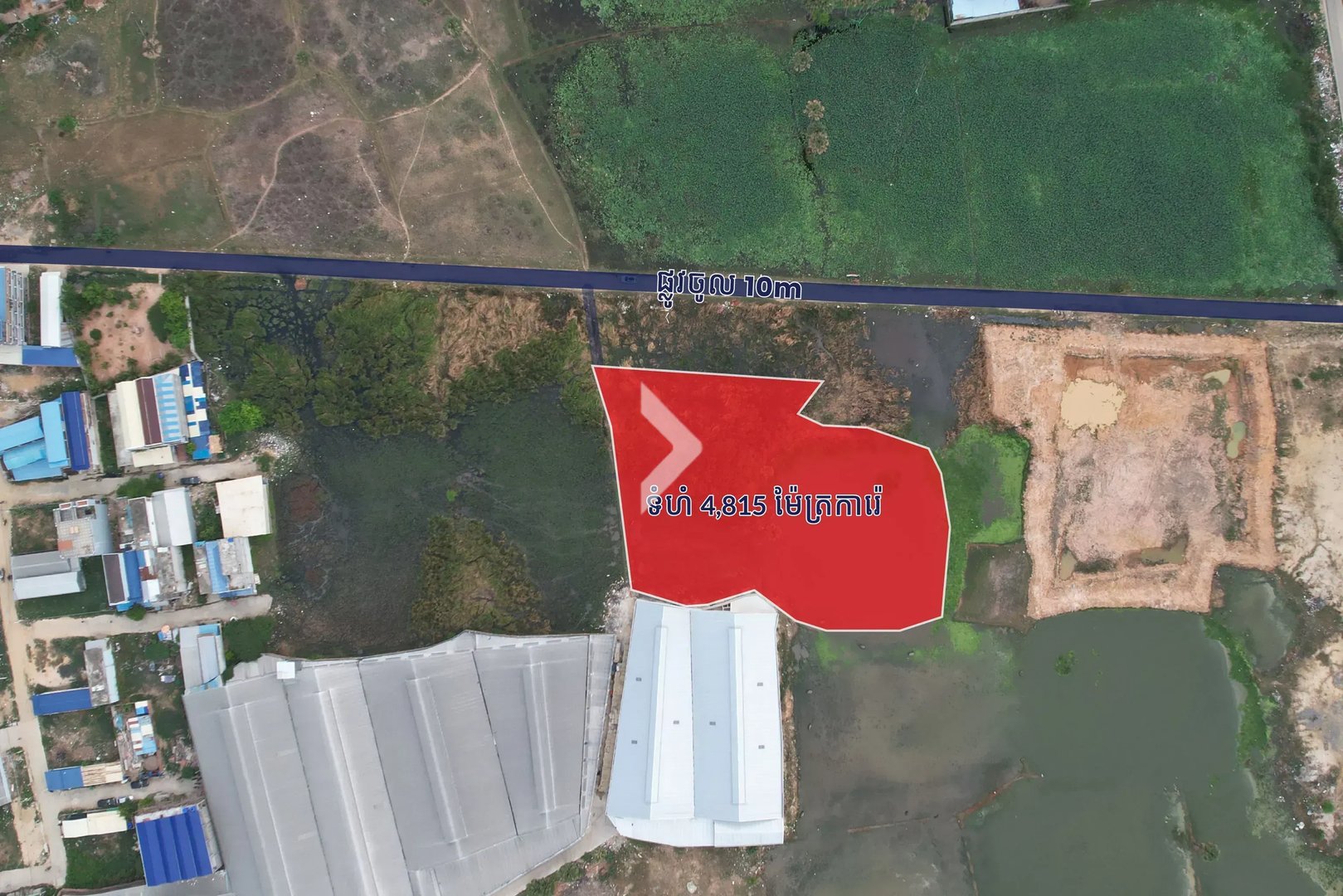 This land in Khan Pou Senchey is a prime investment opportunity! With a spacious entrance road of 10 meters, it's ideal for building a warehouse, factory, or holding onto for future development.