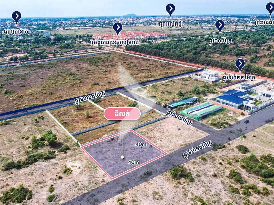 The Potential Land located in the develop area of Siem Reap province, East of Siem reap is 60m Road surrounded by Sokha Resort & Spa, Provincial Government Office and many Giant project like Bakong Village...