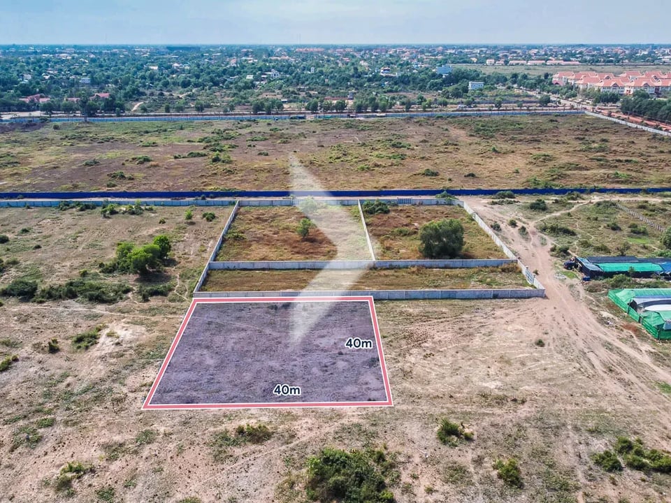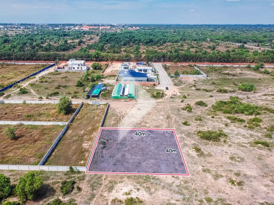 The total area of land is 1,600 sqm with Dimensions 40m x 40m, along main road 15m Only 3 minutes driving to 60m road.