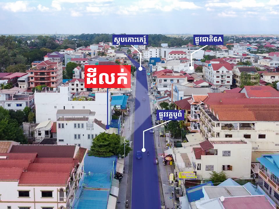 Land for sale measuring 10m x 42m, located on Wat Bo Road in Wat Bo Village, Sala Kamraeuk Commune, Siem Reap City. This property is ideal for those seeking land in the heart of the city. It is just 100 meters from National Road 6 (near Koh Ker Traffic Light) and a 5-minute walk to Siem Reap Riverside or the Royal Palace (Preah Ang Chek Preah Ang Chorm Shrine). With its prime location, this land is highly recommended for opening any business or for residential development.