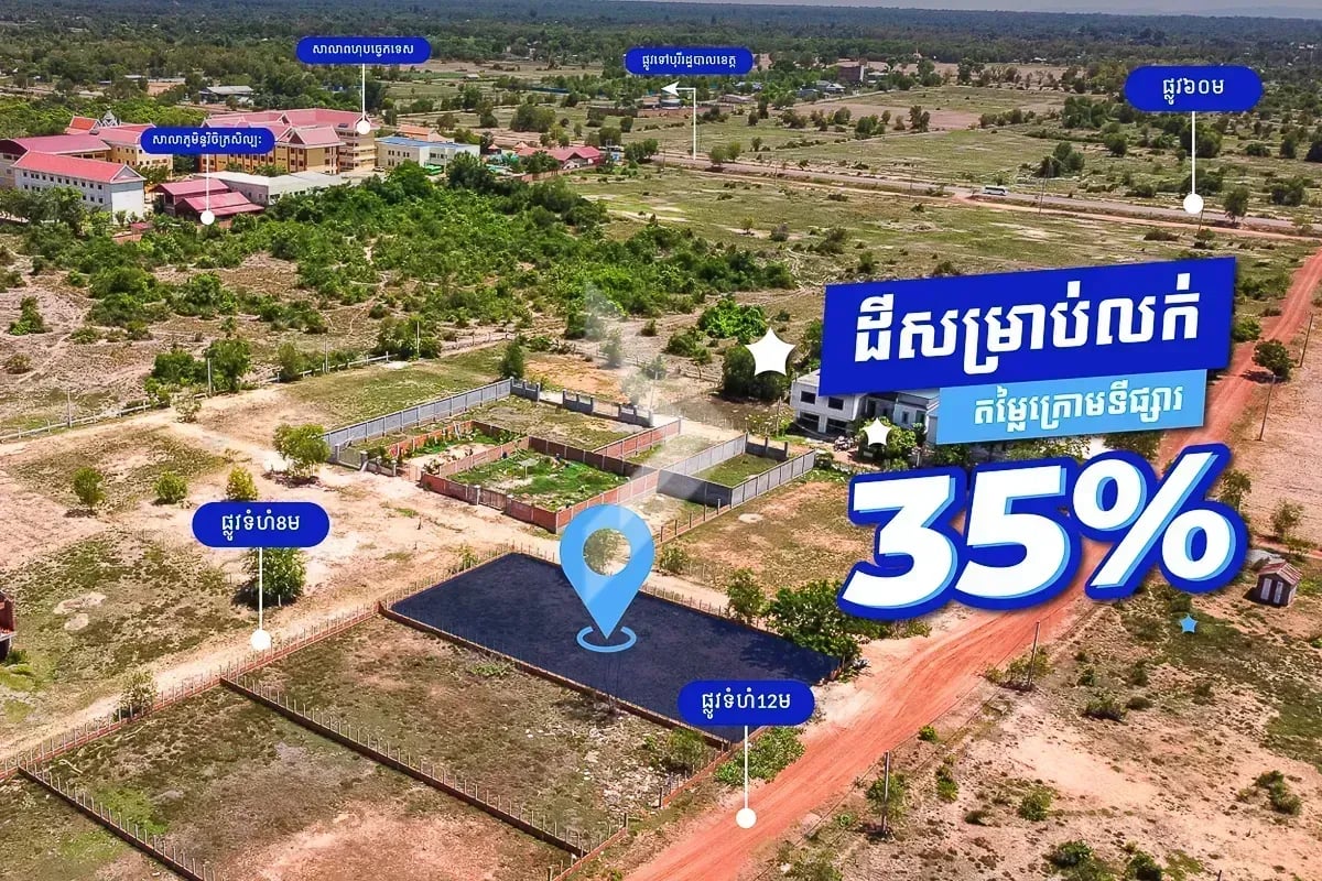 plot of land for sale near 60m Road in Siem Reap City, located in a rapidly developing area. The land features a 12m access road and is situated close to the Borey Administration of Siem Reap Province.