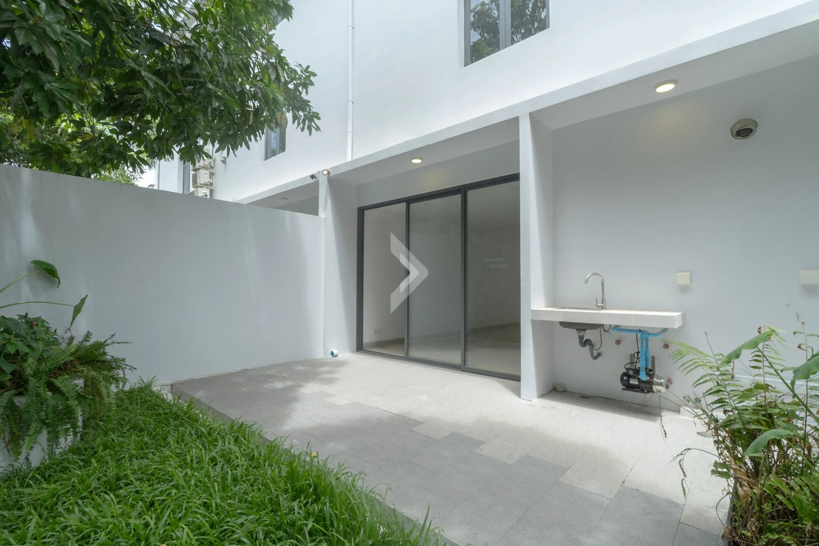 The linked house boasts a charming courtyard, a spacious backyard ranging from 4 to 7 meters that even features a mango tree, beautiful landscaping, and a 7-meter front driveway for ample parking.