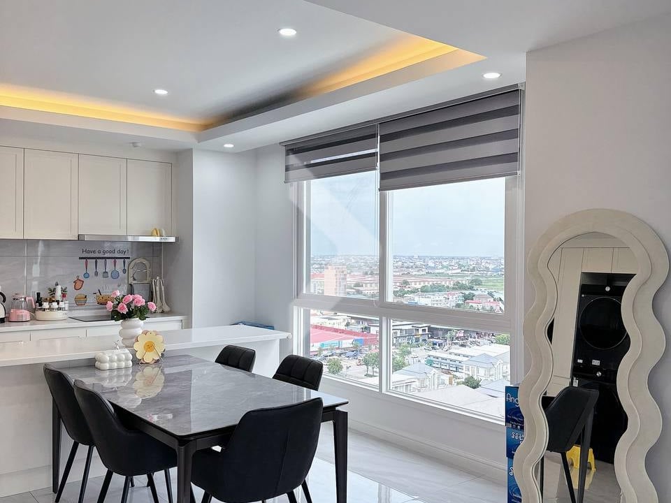 A beautiful 3-bedroom condo located near Aeon Mall Sen Sok, with a spacious area of 160 square meters and a Korean style. The amenities include a gym, swimming pool, and a sky lounge, which suggests a high-end, modern living experience with plenty of luxurious features.