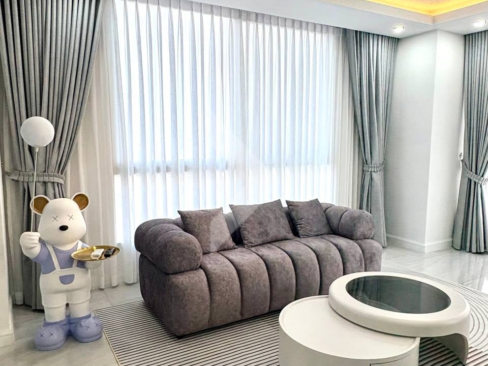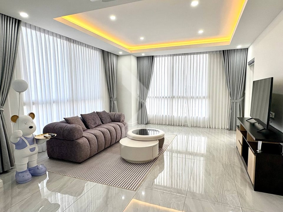 A beautiful 3-bedroom condo located near Aeon Mall Sen Sok, with a spacious area of 160 square meters and a Korean style. The amenities include a gym, swimming pool, and a sky lounge, which suggests a high-end, modern living experience with plenty of luxurious features.