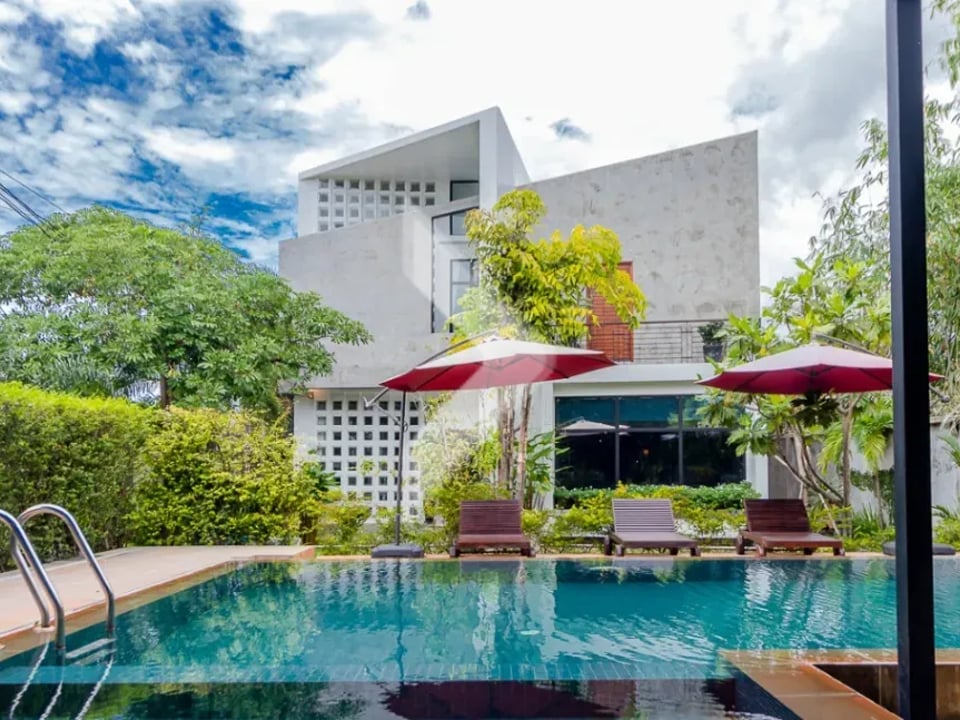 Discover luxurious living in this stunning private villa, located just 250 meters from Ring Road 1 and a short 7-minute drive to the Old Market area and Pub Street. Set on a spacious 1,012 sqm plot, the villa is surrounded by a lush greenery garden filled with big trees, creating a peaceful and quiet setting.