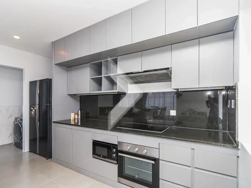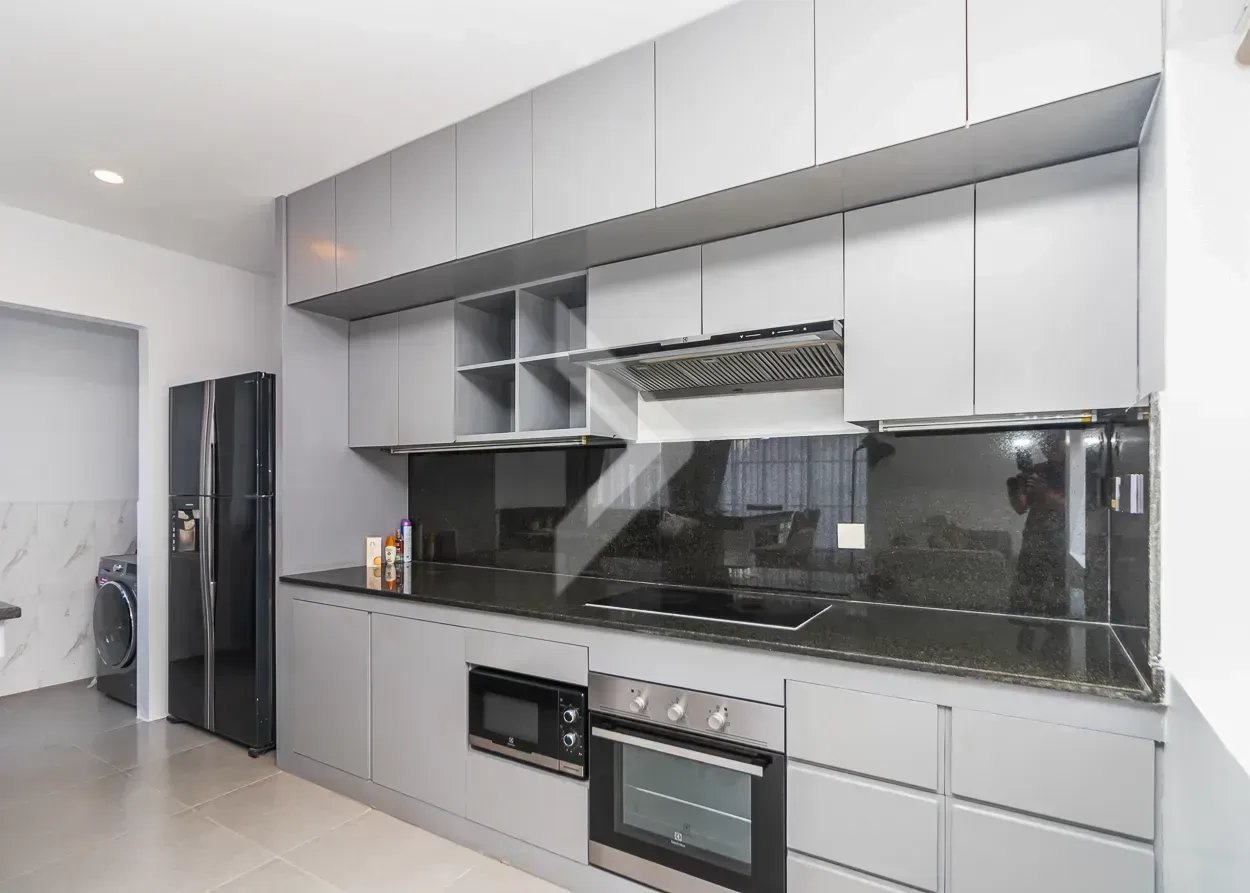 The house offers a comfortable living space, complete with air conditioning, a refrigerator, a ceiling fan for added airflow, a washing machine for your laundry needs, an oven for baking and cooking, a gas cooker for whipping up meals, and a TV for entertainment.