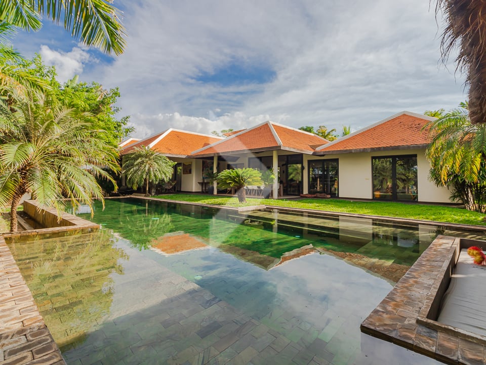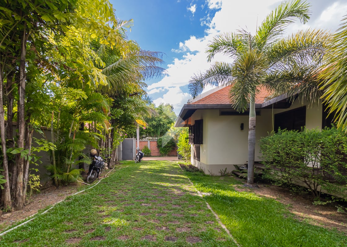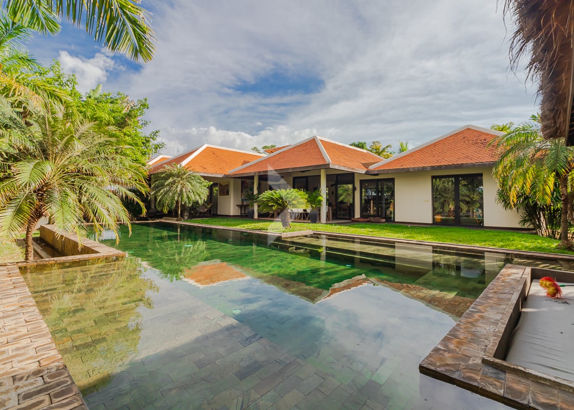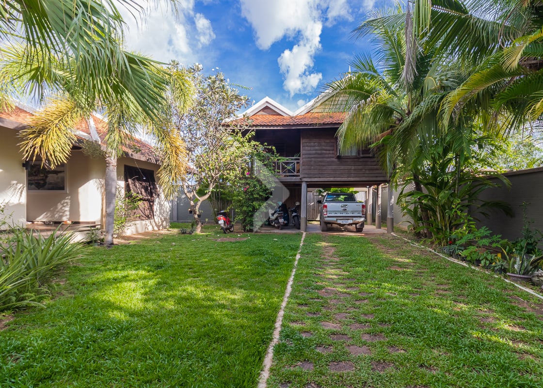 This beautiful 5-bedroom, 6-bathroom villa with a private pool is located just 10 minutes from the city center in Svay Dangkum Commune, Krong Siem Reap. Set on a large 1,400m² plot, the villa offers 350m² of comfortable living space, perfect for a family or as an investment property. The home features spacious bedrooms, each with its own en-suite bathroom, ensuring privacy and convenience. The open plan living and dining areas are bright and welcoming, with a modern kitchen fully equipped for all your cooking needs. Outside, you'll find a lush garden and a large private pool, offering a peaceful and relaxing atmosphere. With its close proximity to the bustling city center, this villa provides easy access to Siem Reap’s attractions, markets, and restaurants while offering a quiet and private retreat away from the hustle and bustle. It’s a perfect opportunity for anyone looking for a luxurious home or a smart investment in a prime location.
