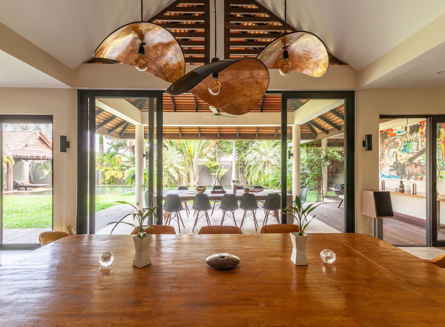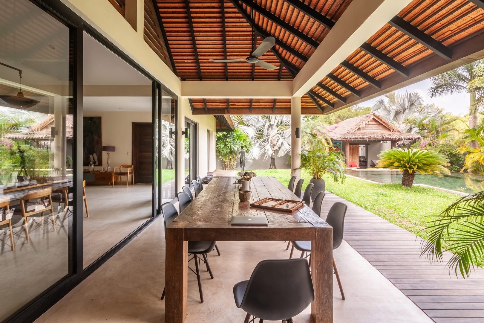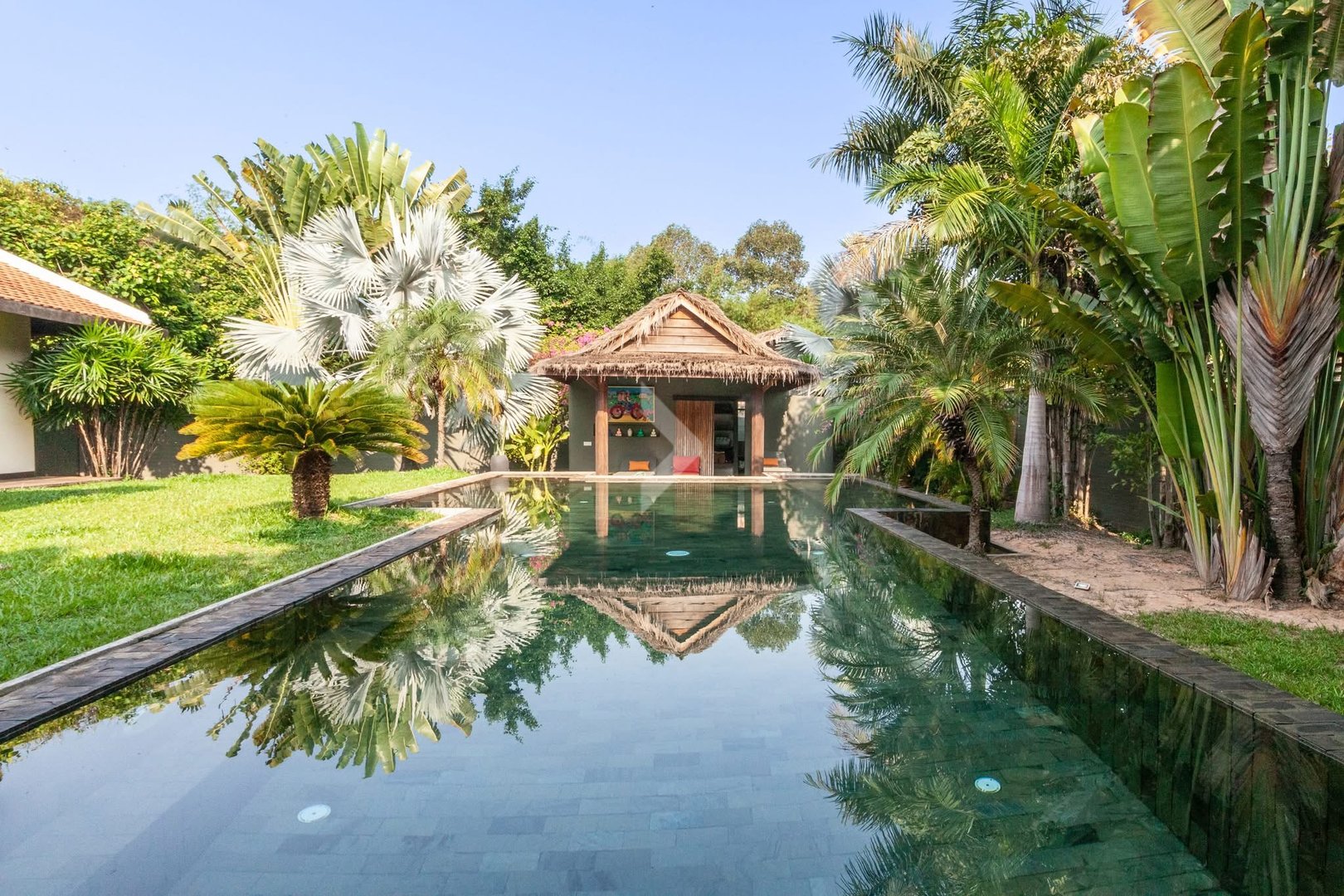 This beautiful 5-bedroom, 6-bathroom villa with a private pool is located just 10 minutes from the city center in Svay Dangkum Commune, Krong Siem Reap. Set on a large 1,400m² plot, the villa offers 350m² of comfortable living space, perfect for a family or as an investment property. The home features spacious bedrooms, each with its own en-suite bathroom, ensuring privacy and convenience. The open plan living and dining areas are bright and welcoming, with a modern kitchen fully equipped for all your cooking needs. Outside, you'll find a lush garden and a large private pool, offering a peaceful and relaxing atmosphere. With its close proximity to the bustling city center, this villa provides easy access to Siem Reap’s attractions, markets, and restaurants while offering a quiet and private retreat away from the hustle and bustle. It’s a perfect opportunity for anyone looking for a luxurious home or a smart investment in a prime location.