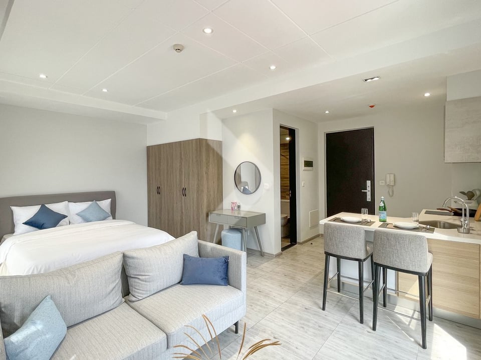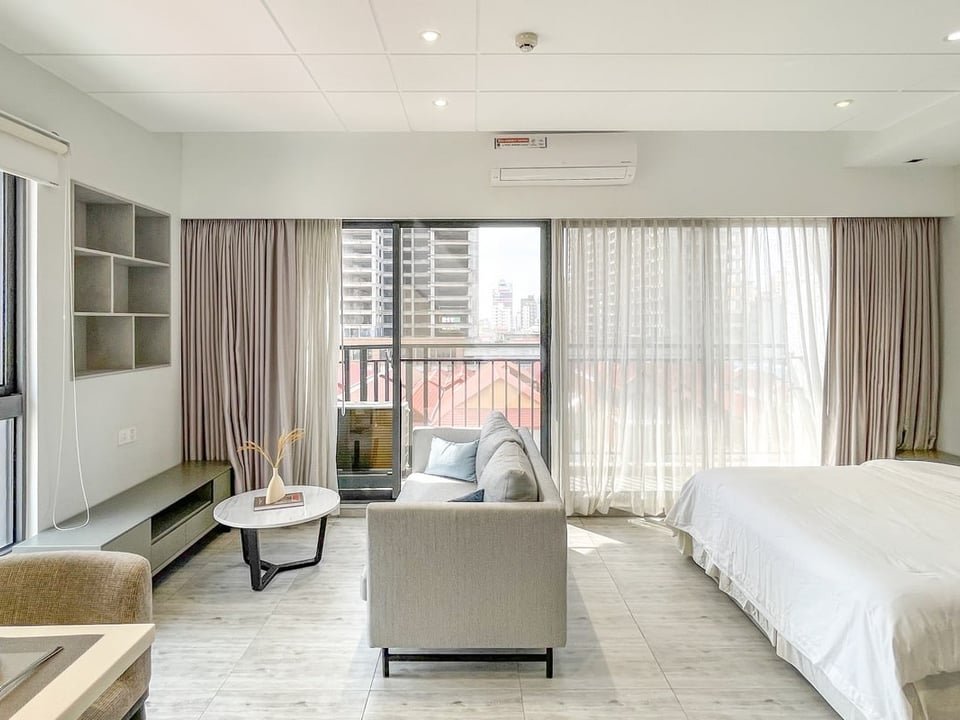 Discover stylish and comfortable living in this well-appointed 40.39sqm studio, located in the desirable Boeng Trabaek area of Chamkar Morn. The open-plan layout includes a cozy living area, a fully equipped kitchen with kitchenware, a modern bathroom, smart TV, and in-unit washing machine. Free Wi-Fi and weekly cleaning services are provided for your convenience.