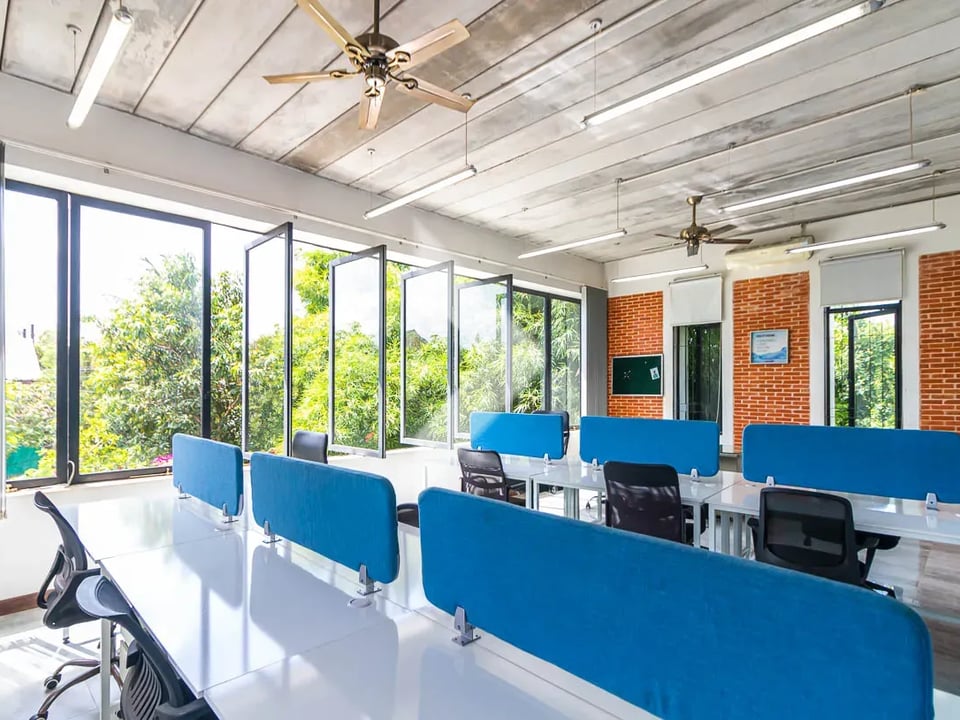 Benefit from essential facilities including high-speed internet connectivity, air conditioning, includes water, cleaning service and ample natural light.