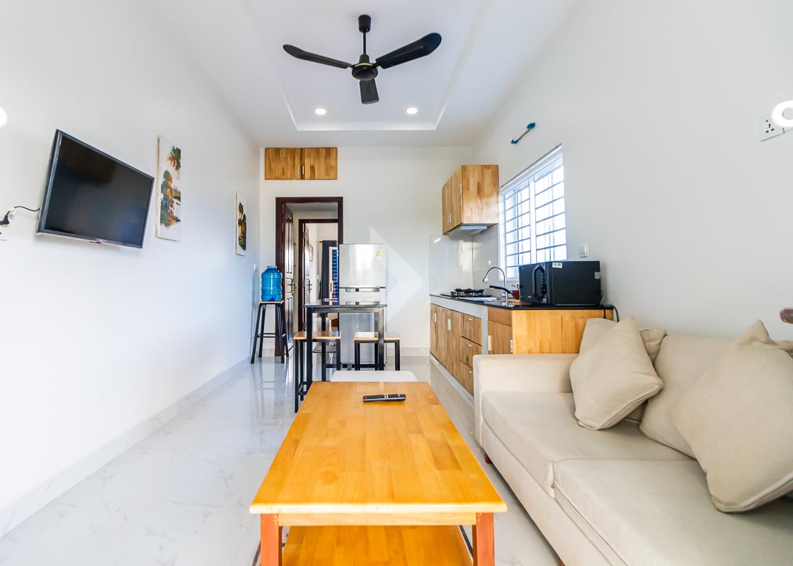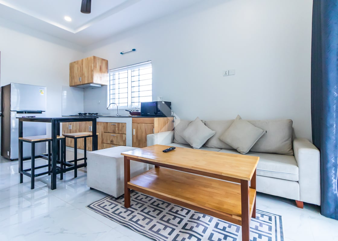 This cozy 1-bedroom apartment is located in the peaceful Svay Dangkum area of Siem Reap, just a few minutes from the city center, markets, and restaurants. The apartment comes fully furnished, with a comfortable living space, kitchen, and private bathroom. It’s perfect for singles or couples looking for a quiet and convenient place to live. Facilities include air conditioning, hot water, Wi-Fi, and parking space. Ready to move in.