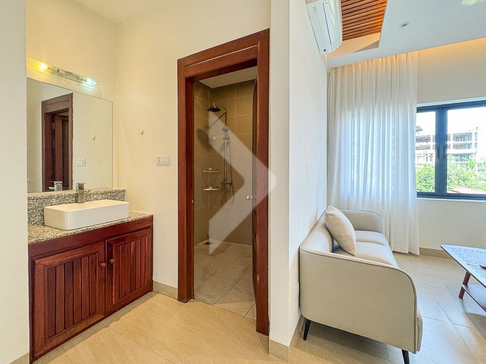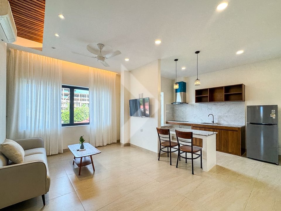 Modern 1-bedroom apartment available for rent in Wat Bo Area, Sala Kamraeuk Commune, Siem Reap City. Just 5 minutes’ walk to the Riverside or the Royal Palace, this apartment offers a highly convenient and central location.