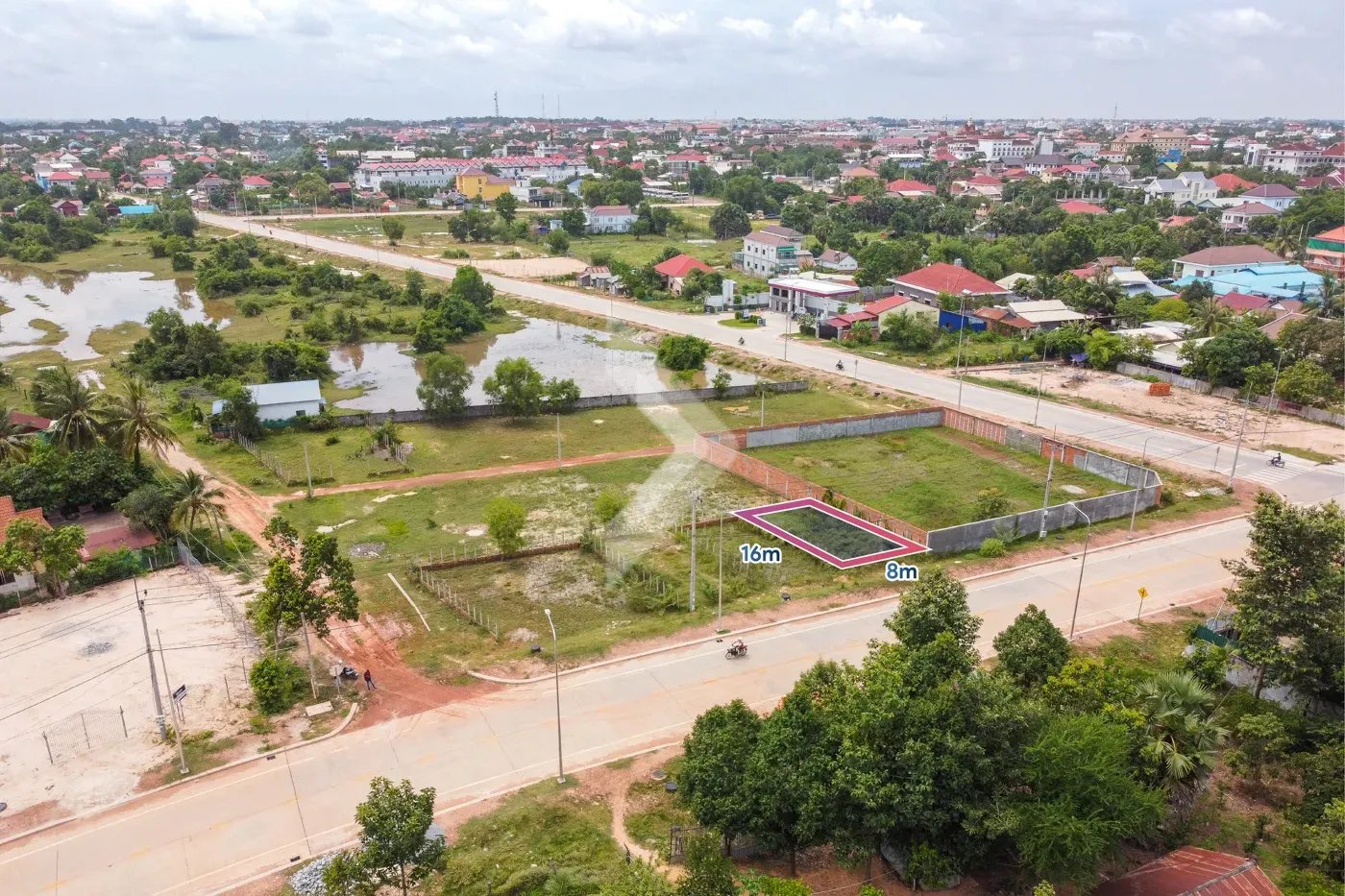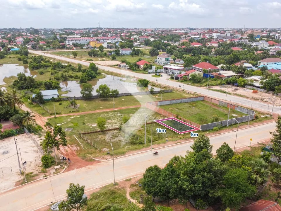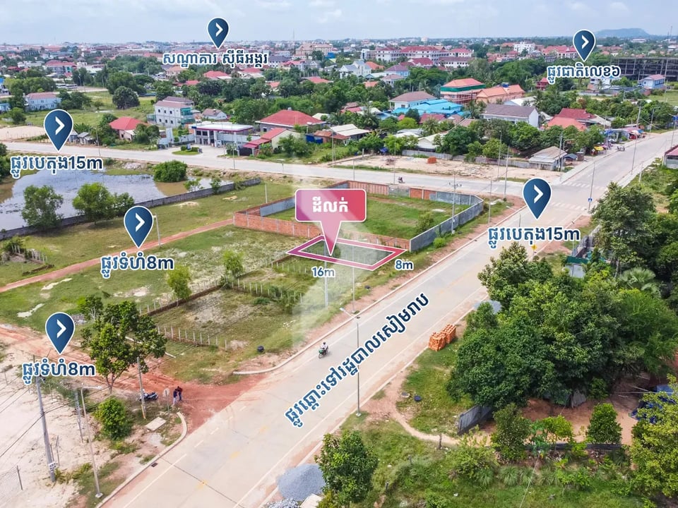 This is a great opportunity to buy a piece of land in Siem Reap! The plot is 8 meters wide and 16 meters long, perfect for building a home, small business, or investment property. Close to local shops, schools, and transportation. Located on 22meter roads.