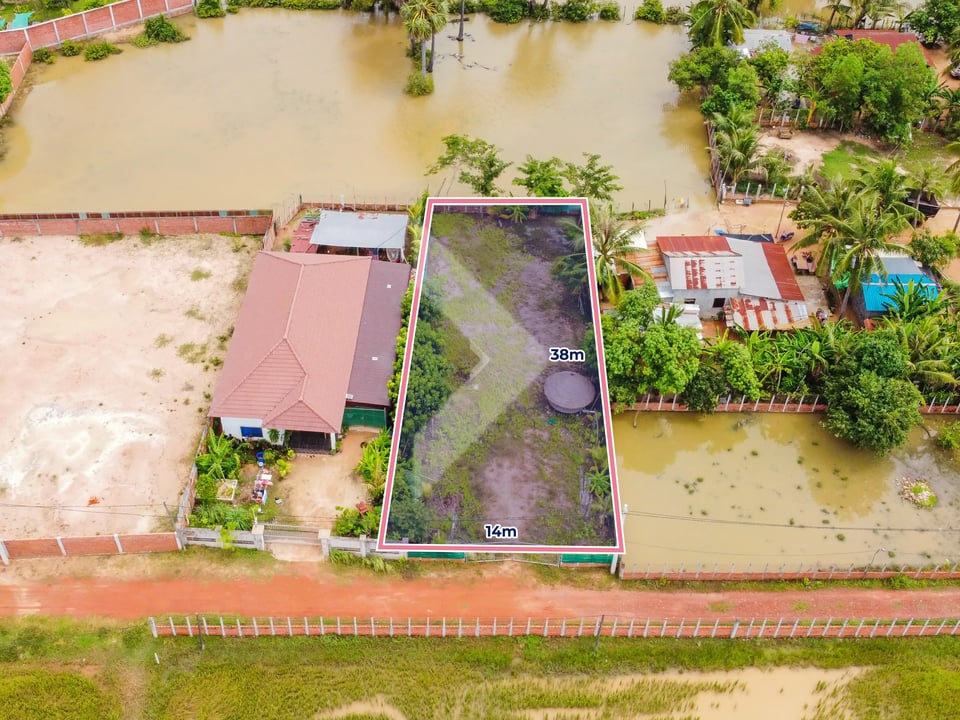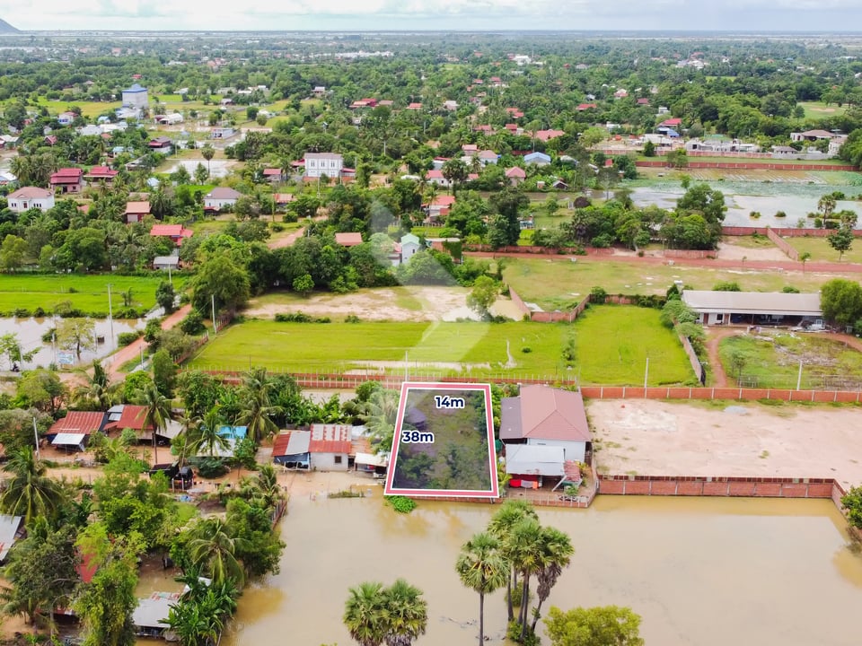 Are you looking to build your dream home or a vacation rental property? Here's a perfect opportunity! This land is for sale in a desirable location near Angkor Golf and Ring Road 1. The property measures 14m x 38m, giving you a total of 531 square meters to design your dream space. Even better, the land already has a gate and is filled, saving you time and money on prep work.