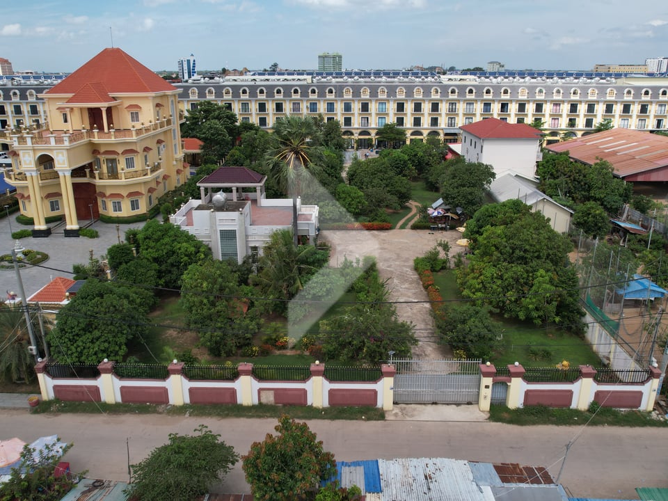 This prime land offering spans 3,522sqm (85m x 40m) and benefits from dual road access, making it a standout location for redevelopment in the fast-evolving Chroy Changvar district. The site currently features a livable 3-bedroom, 3-bathroom villa (approximately 200 sqm), but its full potential lies in future development.