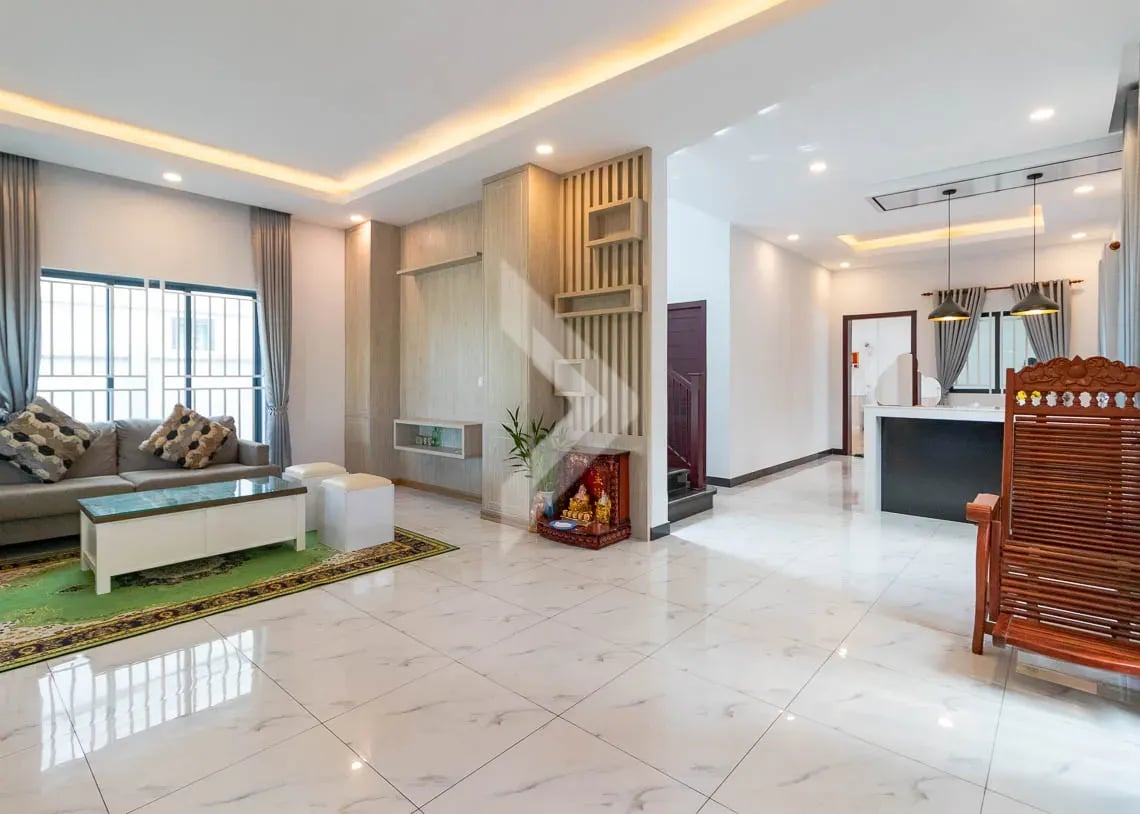 An exceptional living experience in this elegant 4-bedroom private villa, ideally located in the sought-after Borey Tourism community of Siem Reap City. Perfectly positioned just 3 minutes from Macro Mall and a quick 5-minute drive to Phsar Leu Market, this villa offers both convenience and luxury.