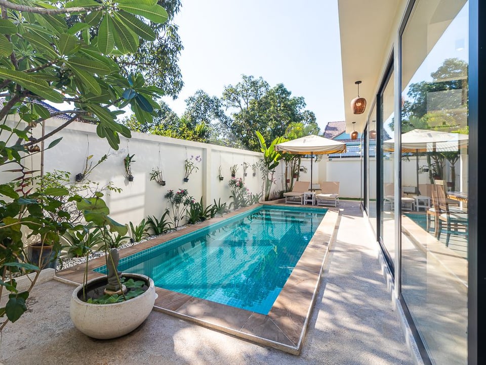 The villa sits on a land size of 198 sqm, offering enough outdoor space for a relaxing garden and private enjoyment.