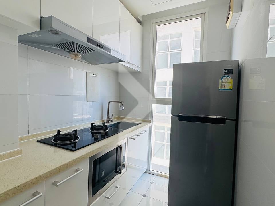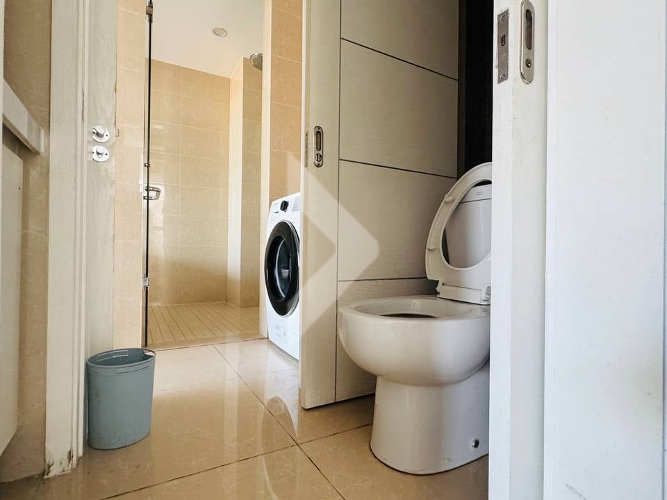 The apartment comes fully equipped with modern essentials, including a refrigerator, microwave, electric stove with ventilation, washing machine, and complete kitchenware—making it move-in ready and ideal for a hassle-free lifestyle.
