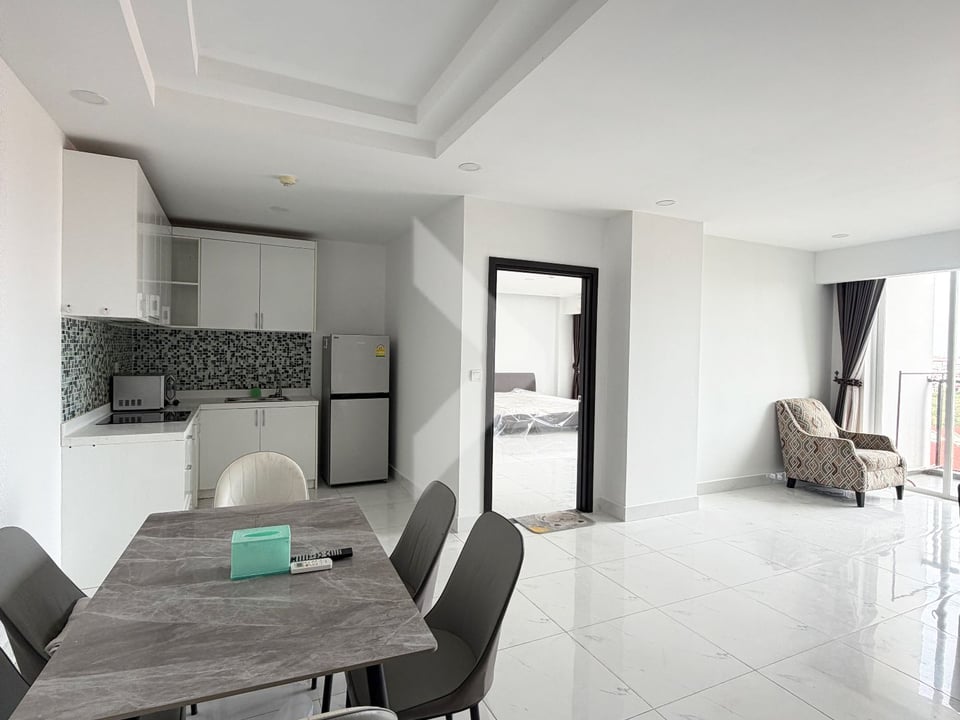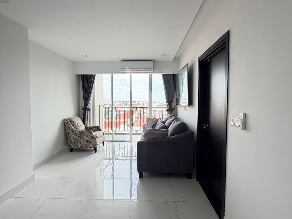 Located in Khan Russey Keo, this spacious two-bedroom apartment offers a total floor area of 106 sqm, providing a comfortable and functional layout ideal for both personal living and investment. The unit features a bright living area, a 6-seater dining space, a modern L-shaped kitchen, 2 bathrooms, and 2 large balconies with an open city view.