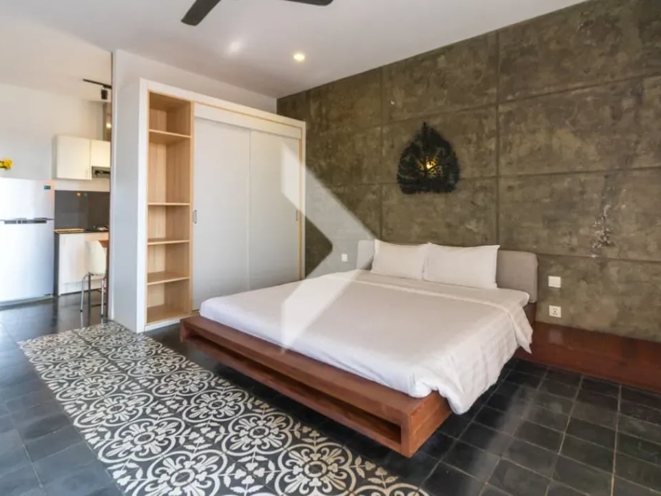 A stylish studio apartment in the vibrant Svay Dangkum Commune of Siem Reap City. This modern unit features an open-concept layout that maximizes space, complete with a comfortable sleeping area, a kitchenette, and a cozy living space. Large windows allow natural light to fill the room, creating a bright and welcoming atmosphere. Located in a lively neighborhood, the apartment is just a short distance from shops, cafes, and local attractions, offering the perfect blend of convenience and comfort. Ideal for singles or couples, this studio provides an affordable option for those looking to enjoy city living without sacrificing quality.