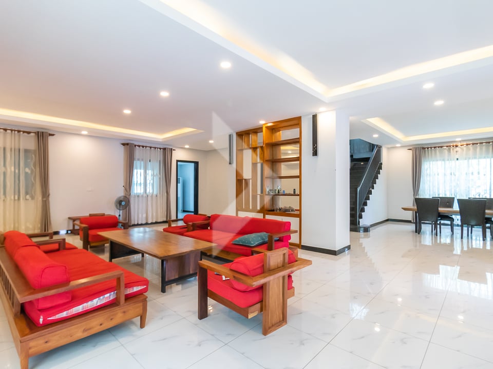 This elegant 5-bedroom twin villa is located in a highly convenient and sought-after area of Siem Reap, just minutes from National Road 6 and Makro Mall. Ideal for families or professionals seeking comfort, space, and accessibility. Generously sized bedrooms, each with natural light and good ventilation. Spacious living and dining area perfect for gatherings. Modern kitchen with ample storage and workspace. Private balconies for relaxation, Secure parking space for multiple vehicles.