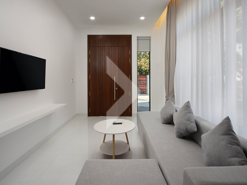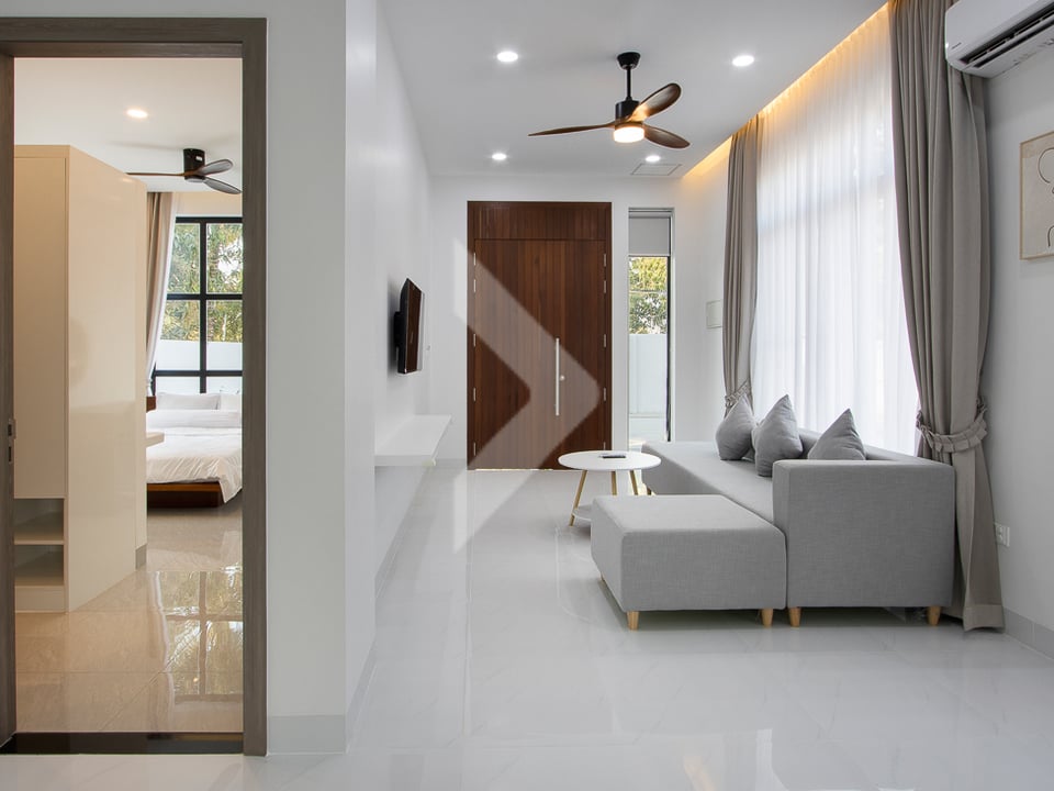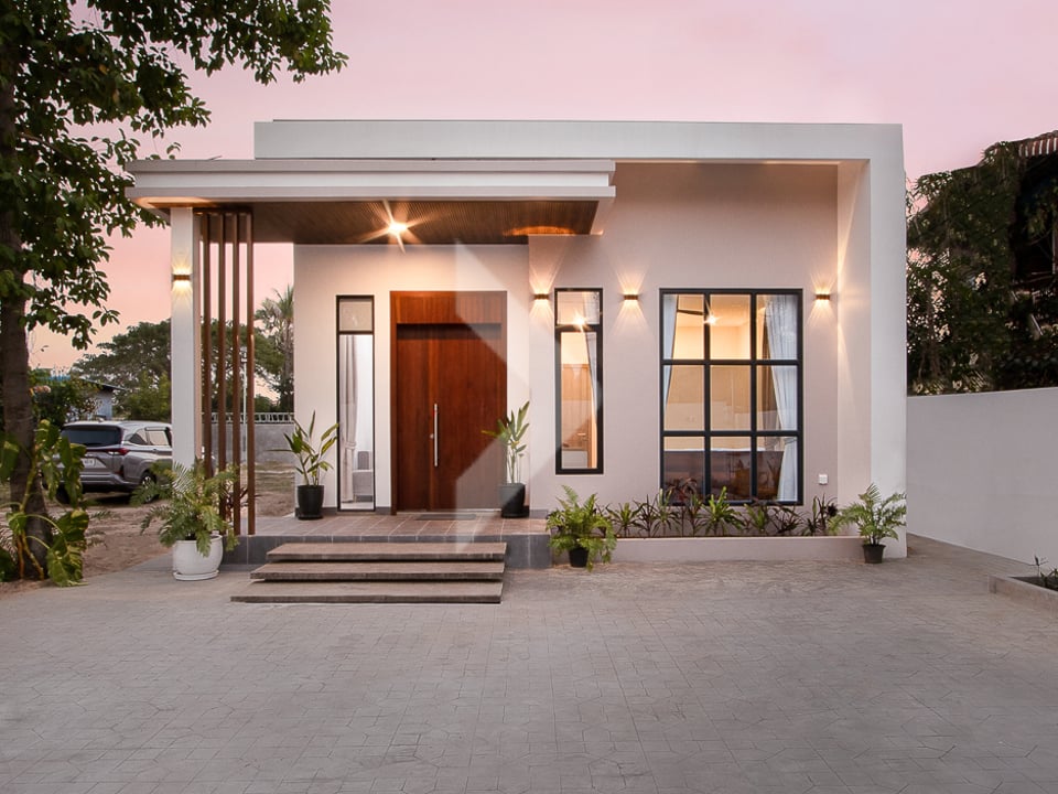 This newly built villa comes fully furnished with all-new furniture and appliances. It features 2 bedrooms, 3 bathrooms, a spacious living room, a modern kitchen, and parking space. Located in Svay Dankum Commune, Siem Reap City, it is only 7 minutes from the Old Market. The villa is surrounded by Western-style villas, hotels, restaurants, shops, boreys, and condos, making it a great choice for comfortable living in a vibrant neighborhood. Additionally, the villa has a rooftop area that can be transformed into a sky bar or a relaxing space to enjoy the view.
