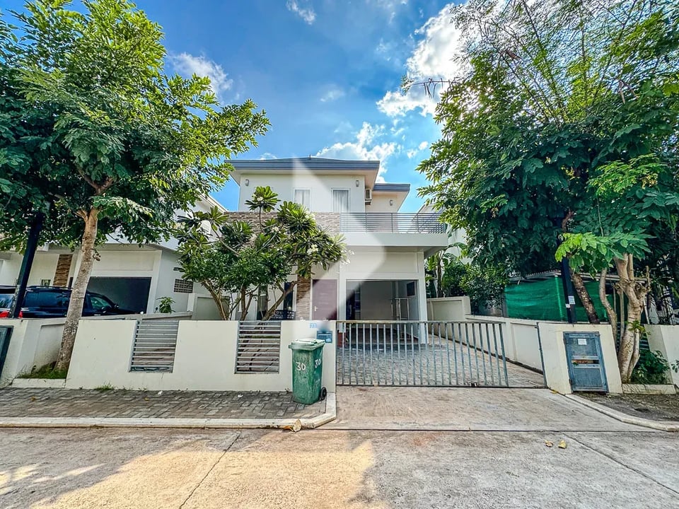 A beautifully designed villa is available for rent in a secure borey located on the west side of Siem Reap City, Sra Ngae Commune. This villa features 3 bedrooms, including 1 master bedroom, a spacious combined kitchen and living room, an additional living area at the front, a small storage space, and parking.