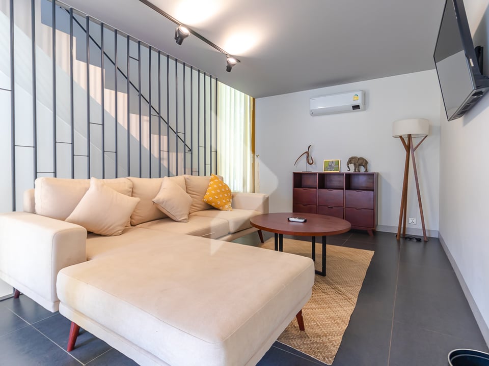 This corner unit at Bakong Village features two (2) bedrooms and complete furnishings, perfect for those seeking a slow lifestyle and peaceful surroundings. The receiving areas are already fitted with multiple seating, including an L-shaped sofa and coffee table, as well as a designated dining set. In the kitchen, you'll find a refrigerator and a two-burner stove ready to use with its gas tank, as well as cookware and cutlery. Bedrooms are ready to provide rest and relaxation with large, comfortable beds, as well as desks and wardrobes, while the bathrooms are equipped with water heaters for daily comfort. The owner will also be adding an automatic washing machine and flat iron for tenants to use, ensuring a quick and easy start of a new chapter in Bakong Village. Furthermore, tenants will be provided with weekly housekeeping plus weekly trips to Makro Supermarket so it's easier than ever to stay on top of the grocery list and keep the household running.