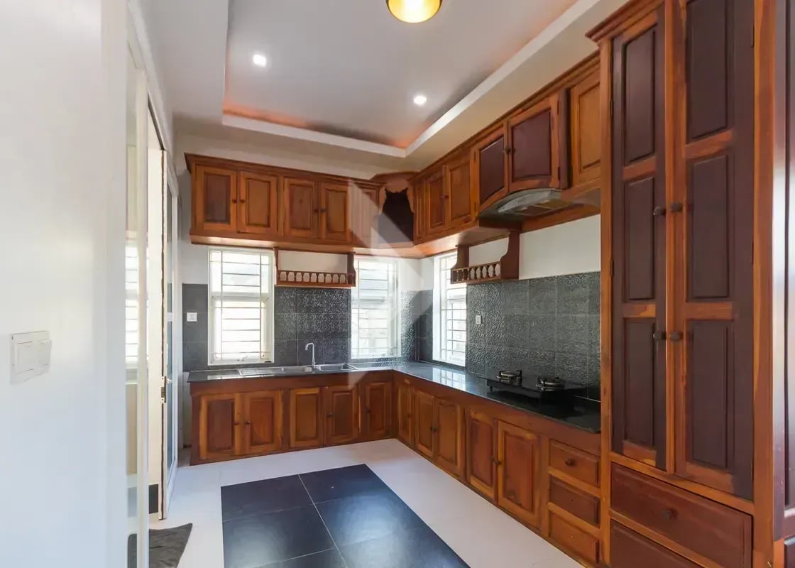 Experience luxurious living in Siem Reap with this exquisite 3-bedroom villa available for rent in Sala Kamreuk. Nestled in a prestigious residential area known for its tranquility and convenience, this villa offers a perfect blend of modern comfort and Khmer architectural charm. The open-plan living area seamlessly connects to a well-appointed kitchen, complete with modern appliances, ample storage.