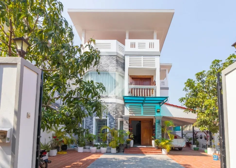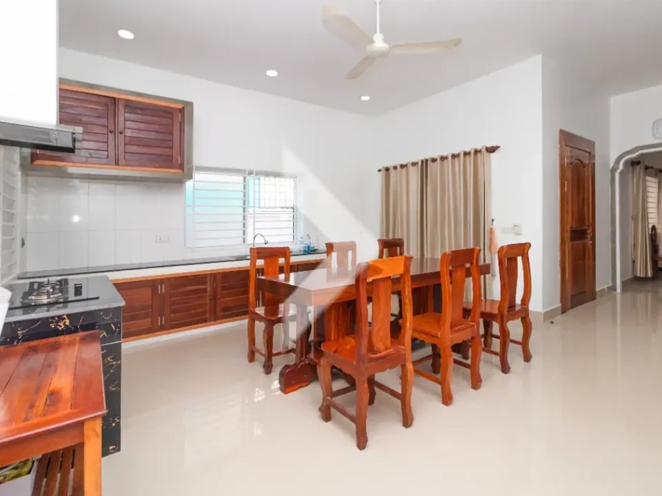 This lovely 6-bedroom villa for rent in Svay Dangkum, located near Derm Kralanh Market. It’s a great option for families or groups, with plenty of space to relax and a kitchen that’s perfect for cooking meals. Each bedroom is roomy, and there are multiple bathrooms for convenience. You’ll love being just a short walk from the market, where you can find fresh produce and local goods. Enjoy a friendly neighborhood with easy access to shops and restaurants. This villa is a fantastic place to experience local life while staying comfortably.