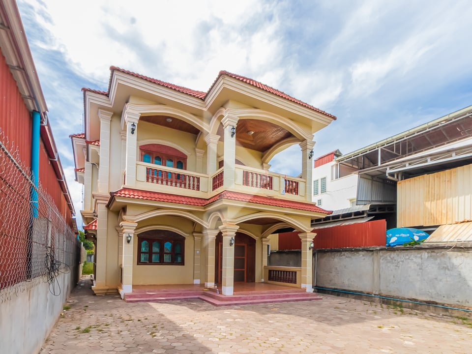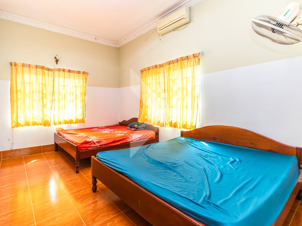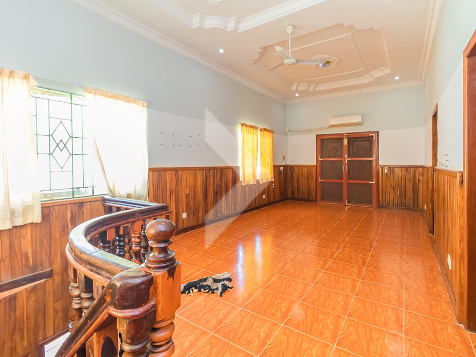 This 4-bedroom villa for rent in Svay Dangkum, Siem Reap, is an excellent choice for an office or NGO. The villa has 4 bedrooms and 5 bathrooms, Living room and private kitchen area. The villa is located near a local market and is next to a 22-meter concrete road, making it easily accessible. It also offers a large parking area, providing plenty of space for staff and visitors. It’s a convenient and quiet place for businesses or non-profits in Siem Reap.