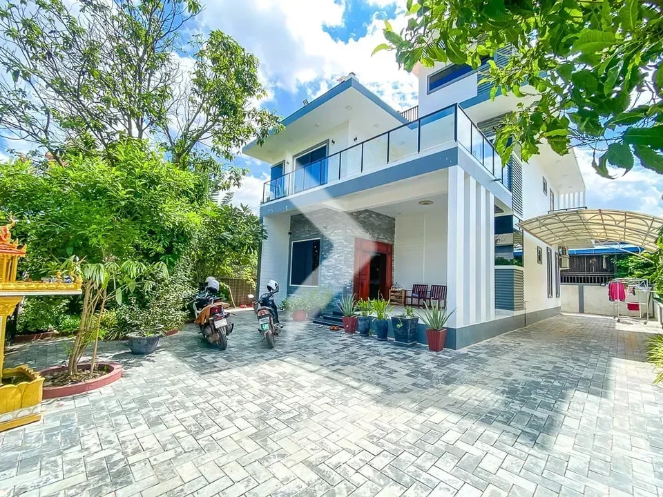 Beautiful villa for sale located in the desirable Wat Bo area of Sala Kamraeuk Commune, Siem Reap. This spacious property features 4 bedrooms and 4 bathrooms, perfect for family living.