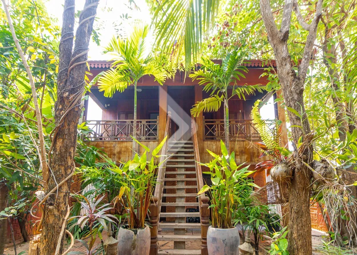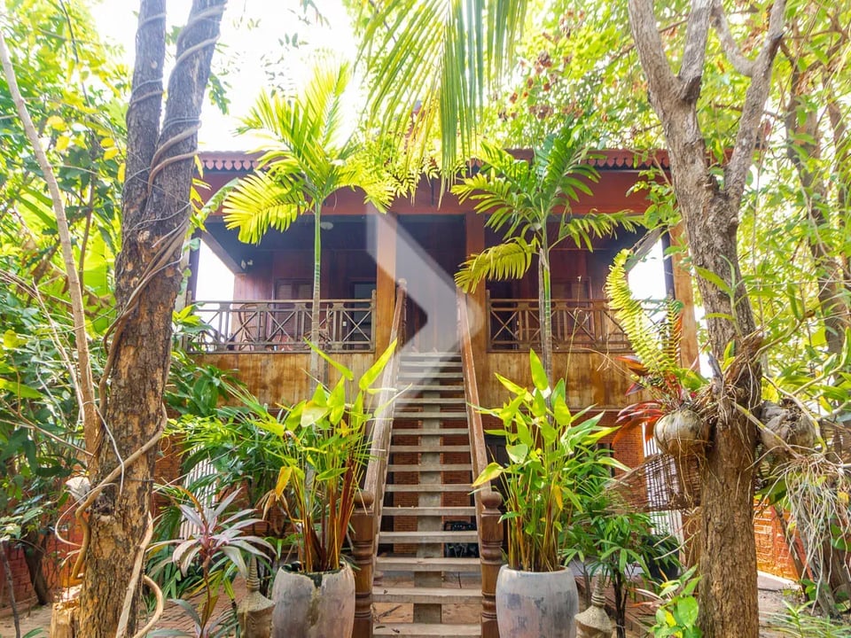 This elegant traditional Khmer style villa is surrounded by nature with beautiful greenery all around. On 2 floors this 112m2 villa has 2 bedrooms, bathroom and a large deck to enjoy the views and soak in the fresh air. The location is really something unique as set in a tranquil green setting in a very quiet area. Only 8min to ICF Wake Park, 6min to Build Bright University, has many shops, restaurants, banks, schools and market nearby. looking for that peaceful lifestyle near the city but far enough away from the hustle and bustle this is the opportunity for you!